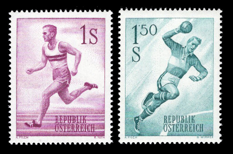 Austrian stamp set (2 values) "Sport" from 1959, comb perforation 14½ : 13¾, intaglio printing