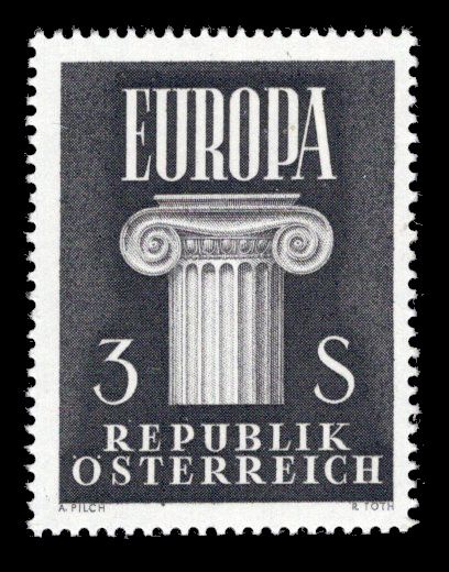 Austrian stamp "Europamarke 1960" (Ionian column), 3 Schilling, in the colour black, comb perforation 14¼ : 13¾, intaglio printing.